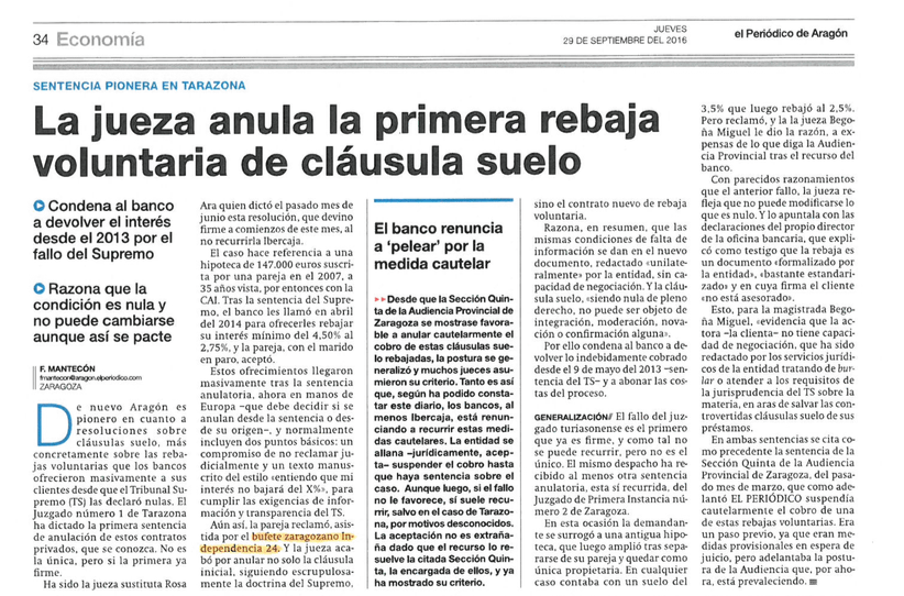El Despacho de Abogados de Zaragoza, Independencia24, ha vuelto a lograr una sentencia favorable que anula los Acuerdos Trampa de los bancos Con ésta sentencia ya son más de 30 los casos ganados para nuestros clientes. Aunque hayas firmado una cuerdo con tu banco en el que se rebaja la cláusula suelo a cambio de …